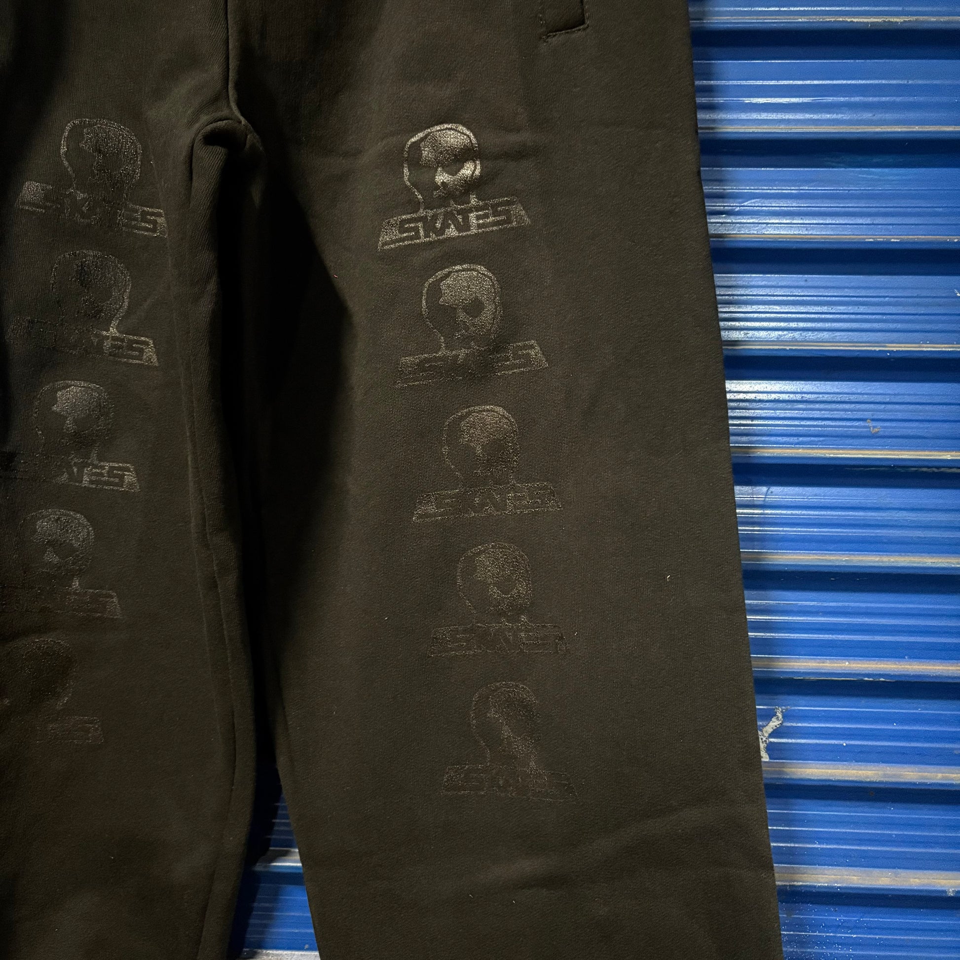 スカルロゴ ロゴ スウェットパンツ ブラックアウト(ブラックxブラックプリント)